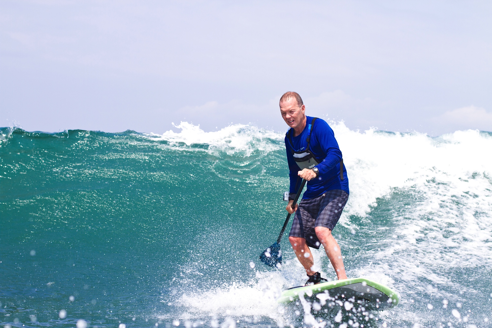 What Randall learns from his students is that in these sports people like to gather in groups, talk story, refine skills and build a community. While Randall has the competitive drive and ambition to race, he realizes that many SUP-ers simply like to gather – building community more than building a shelf full of race trophies. You will not shake the “racer” out of Randall though. From his early days of sailing, then on to surfing, he has learned that the best way to home your sport skills and be the safest participant you can be, it pays to compete. Not to win, but to better your own level.