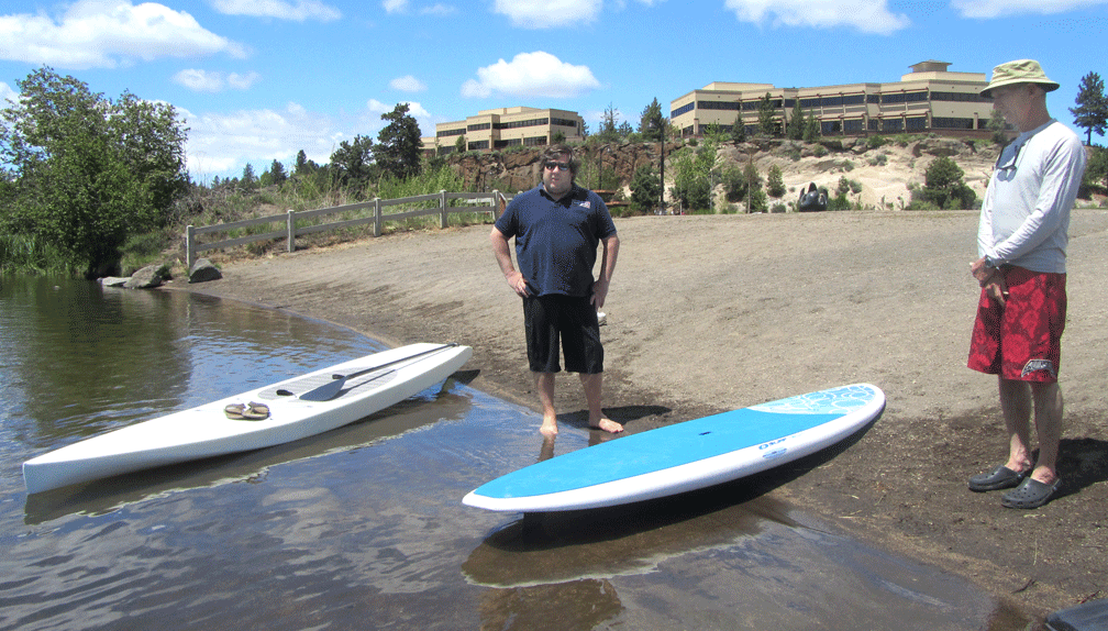 When I asked Fran how she began standup paddling, Fran recalled her first experience five years ago. She had flown into Boston, then drove a rental car to New Hampshire to visit Clay, who lived with Joyce on a beautiful small lake. She recalls, “It was about 5 p.m. when I arrived, but Clay insisted I go out with them on a standup board right away. I put on my swim suit, sure I would immediately fall in. Well – it was an amazing experience! It was getting dusk, and we paddled around a small island in the middle of the lake, picked a few berries. Then continued on up to the end of the lake. On the way back we saw loons swimming along. I had never seen a loon, and it was ‘chicken skin’ to hear them. And amazingly, I didn’t fall in.”