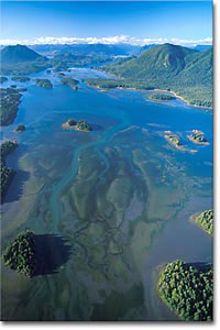 In the photo to the left you can see how close the village of Tofino is to the open ocean (lower left). Another interesting local feature to be aware of is the seaplanes regularly landing in the sound. They land in an area shown (center of picture at left) that is close to our put in and take out point at the harbor. Coincidentally, there is a relatively shallow bank that stretched about 200 yards across in the same area. Just when your path is taking you across the shallow bank and its squirrely currents, you are in the path of the approaching seaplanes. It’s easy to be safe – as long as you stay aware of the surroundings both natural and man-made.