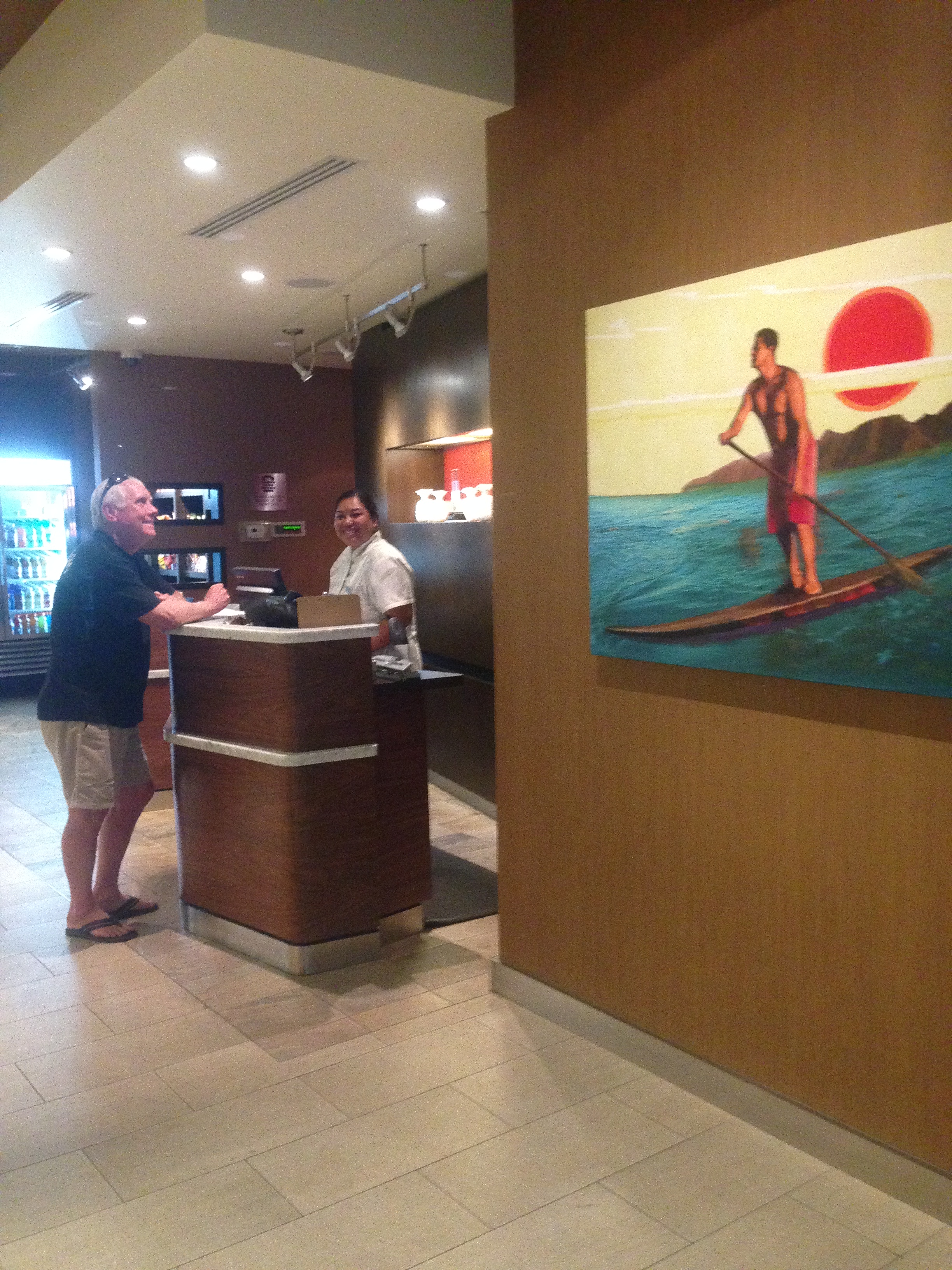 Our Courtyard “home away from home” has much more than the top quality accommodations and service we surfers, SUP paddlers and water athletes need to really live the aloha spirit of the islands. The moment you enter the stunning lobby, fine art images and decor surround the senses. How can it be that each staff member we encountered had a ready smile, efficient skills and in-depth local knowledge. We had so many dining experiences at “off the beaten path” restaurants filled with more locals than visitors.