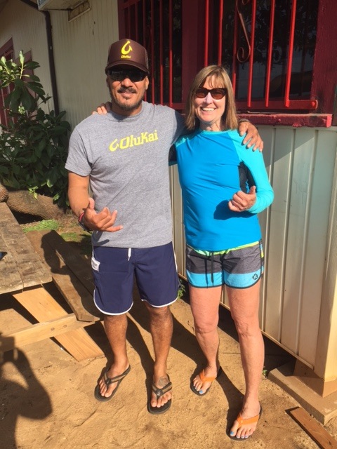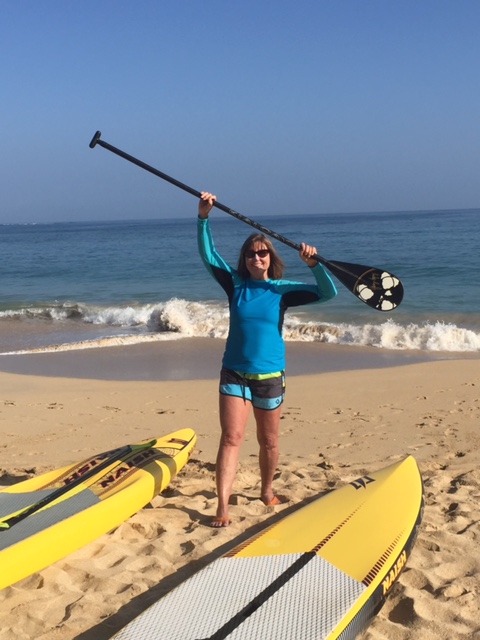 Four years ago a rubbery-kneed, nervous version of me set off from Paia Youth Center on Maui for the 3 mile “Fun Race” inspired and lead by Suzie Cooney of Suzie Trains Maui. The day was windy as we all headed toward the water, most of us experiencing our first open ocean down winder. Led by safety crews on jet skis we all made our way toward Kanaha Beach Park – my husband, Ed, and I were on bulky, rented, dinged up 11′ surfboards. Little did we know know what a metamorphosis would occur in those 3 miles.