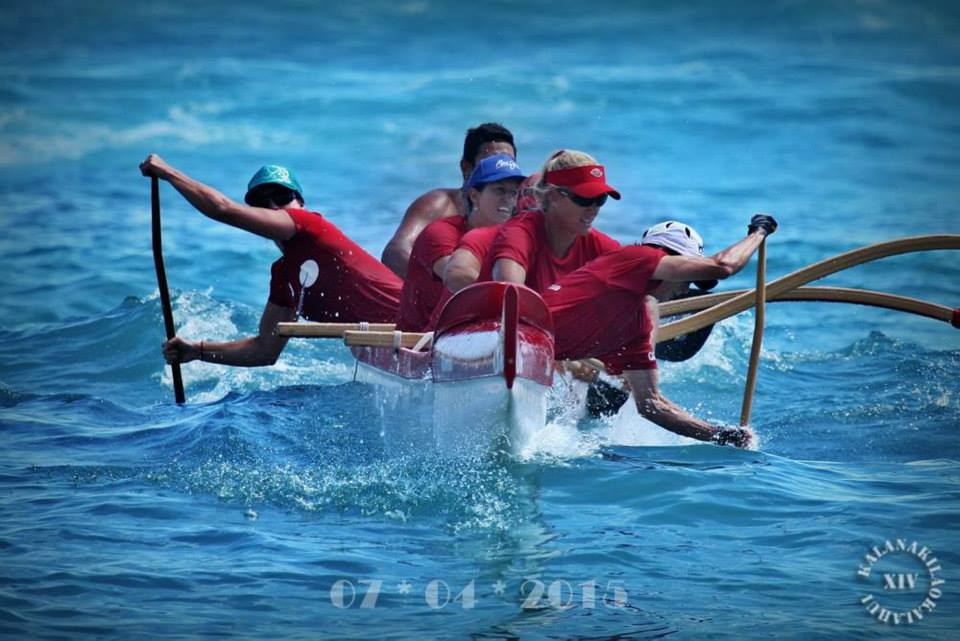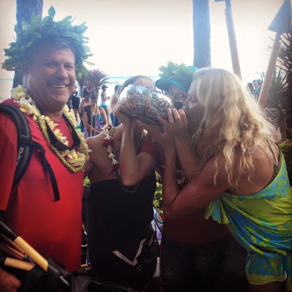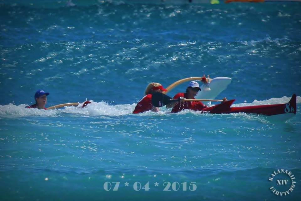 Jane’s club, Outrigger Canoe Club, hosts the 4th of July McFarlane regatta in front of Dukes Waikiki every  year since the 1940s. The open men and women’s divisions are divided into four races, Freshman, Sophomore, Junior and Senior. The ‘Premier” races to win are Sophomore and Senior, and if you win the Senior you get to drink champagne from a silver bowl after the race! The Soph race is one mile and Senior is mile and one half.