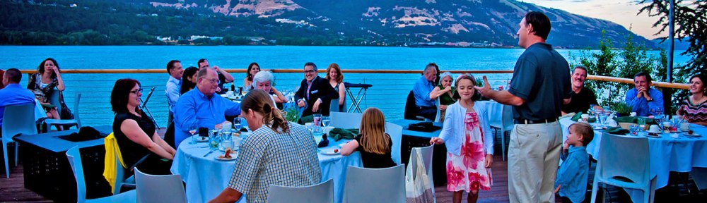 This weekend under the sunny skies of Hood River, surrounded by the sparkling waters of the Columbia River just steps away from the newly renovated riverfront dining areas and deck, we enjoyed the first night’s sunset wine and dinner outdoors. Were we hungry for the fresh and local fare? Absolutely! We had sunned and splashed at the outdoor pool protected from the wind by clear glass that allowed a full view of the river and sweeping panorama views.