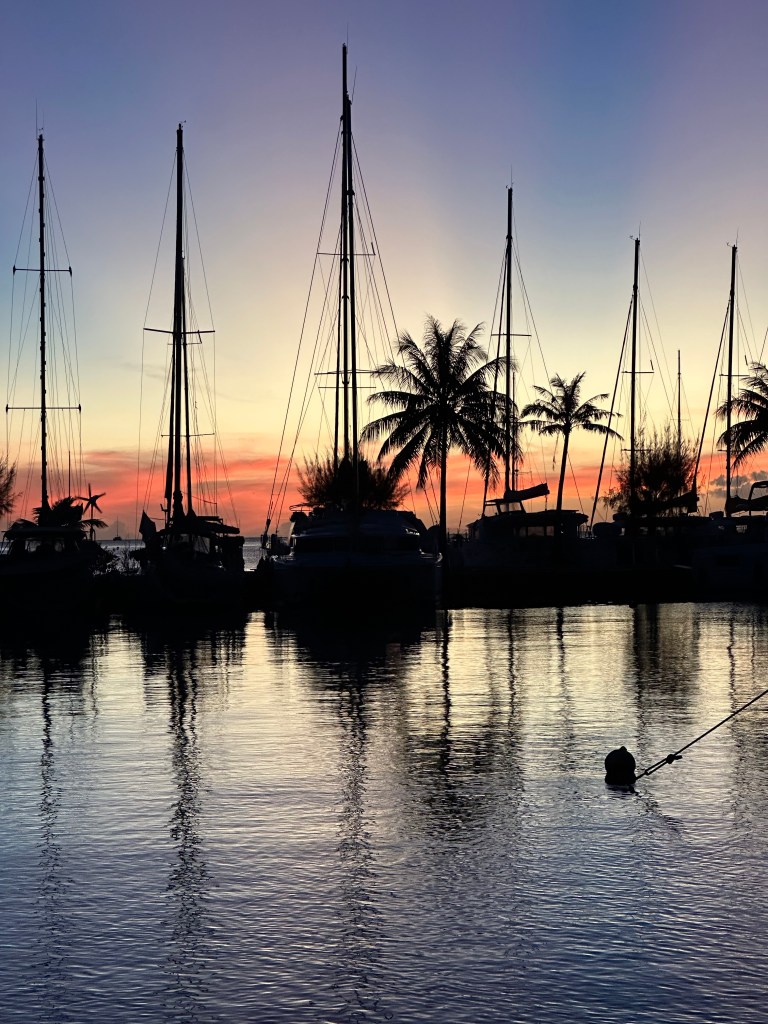 After traveling for the better part of two days, finally meeting up with our traveling buddies and hopping off the taxi at Raiatea, the fleet of catamarans bobbing in the Moorings Marina was a very welcoming sight! With two full weeks of exploring Tahiti, Taha’a, Bora Bora and Huahine ahead of us our spirits were as bright as the tropical sun.