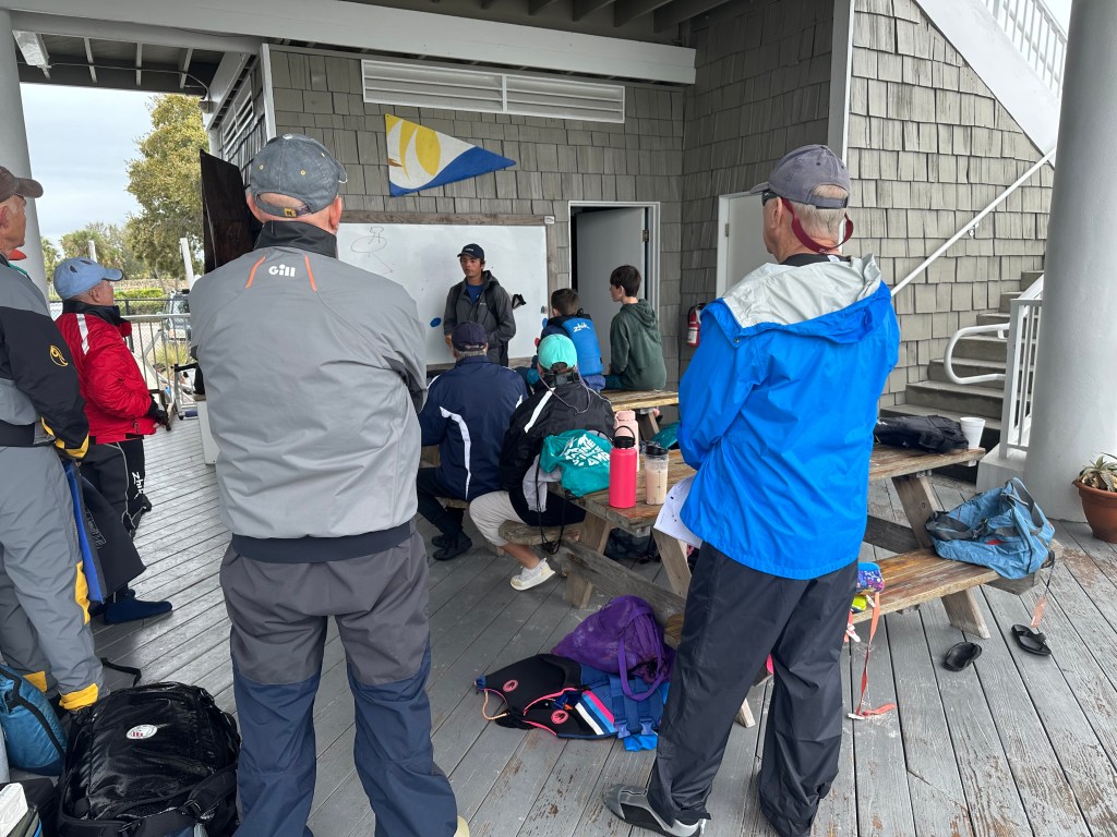 They really caught my attention. From the skippers meeting at 9 am until the completion of after race reviews at 5 PM they were fully engaged. There they are right at the very front of the group hanging on to every word at the skippers meeting. And they were just as committed to the experience at the end of the day.