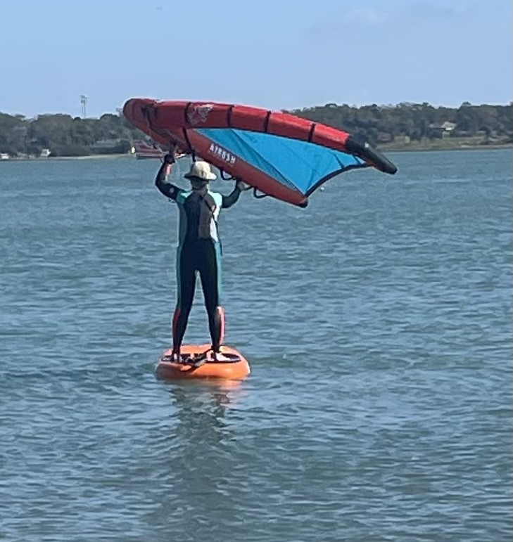 I started out with some instincts about how to move across the water with wind power from various experiences under sail – from big boats to playful little Hobie cats to windsurfing fun. Moving under wing-power is not a direct translation from a sail, but wind awareness does help. When I took my first lesson in Hood River, OR, I wasn’t totally inept.