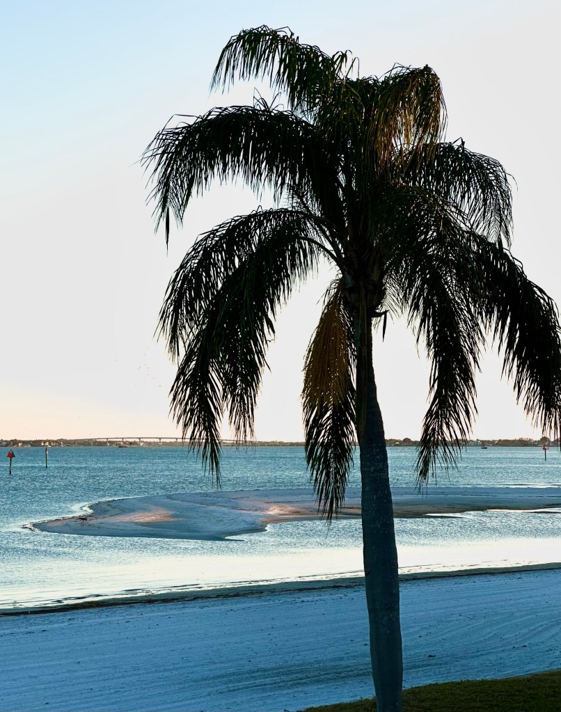The day before, Ed and I had hiked along the beach from Clearwater Beach to Caladesi Island State Park. The isolated beaches, the mangrove forests and the many trees decorated with shells was a far cry from the bustling tourist center just a few miles south. We discovered a 50 yard “land bridge that connected the inland waterway to the Gulf of Mexico. My thought was to paddle inland from Sand Key Inlet then walk my board across the land bridge (4 miles north) and do the 4.6 mile return paddle in the Gulf.