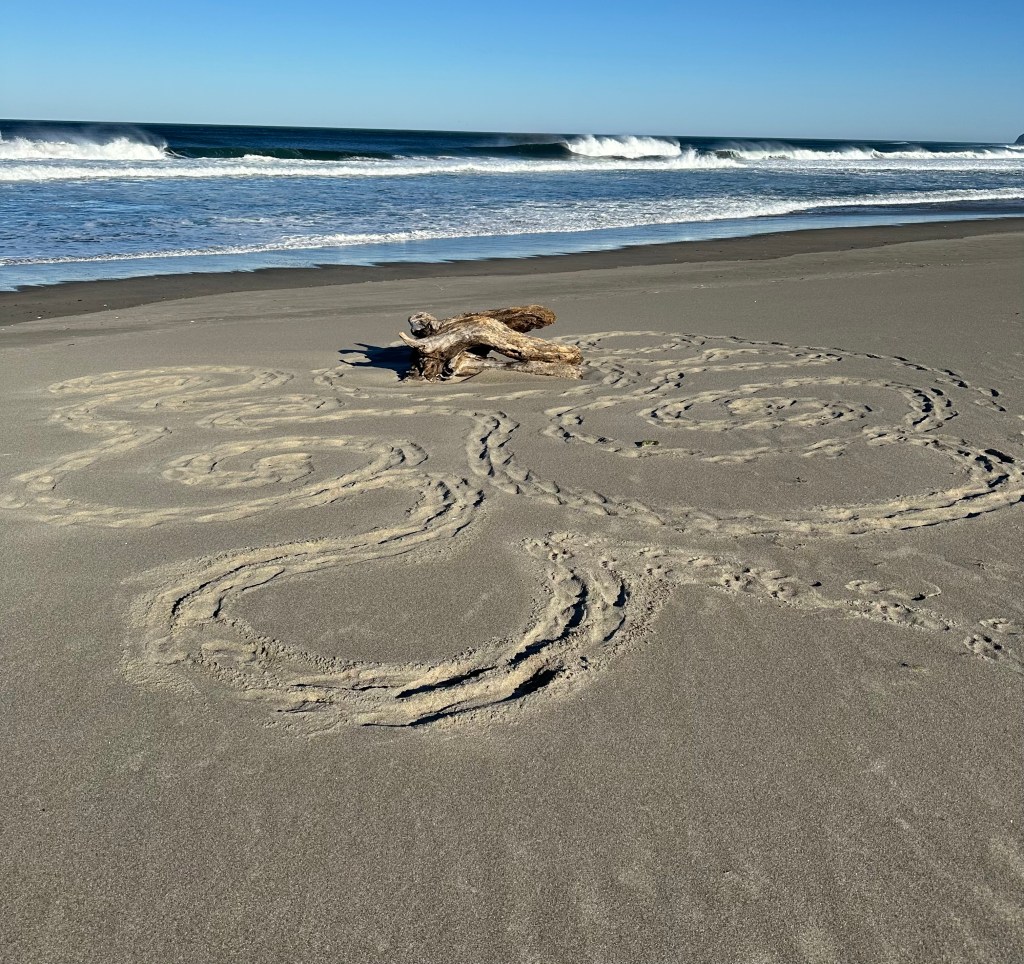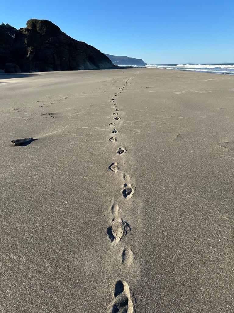 A real gem here on the Oregon coast is the Oregon Coast Trail. You will be enjoying that trail from this spot. As you walk toward the ocean be aware of timing and tides. You’ll turn right and walk about a mile past looming cliffs, well-sculpted driftwood and an endless show of salty energy delivered by “Mother Ocean.”
