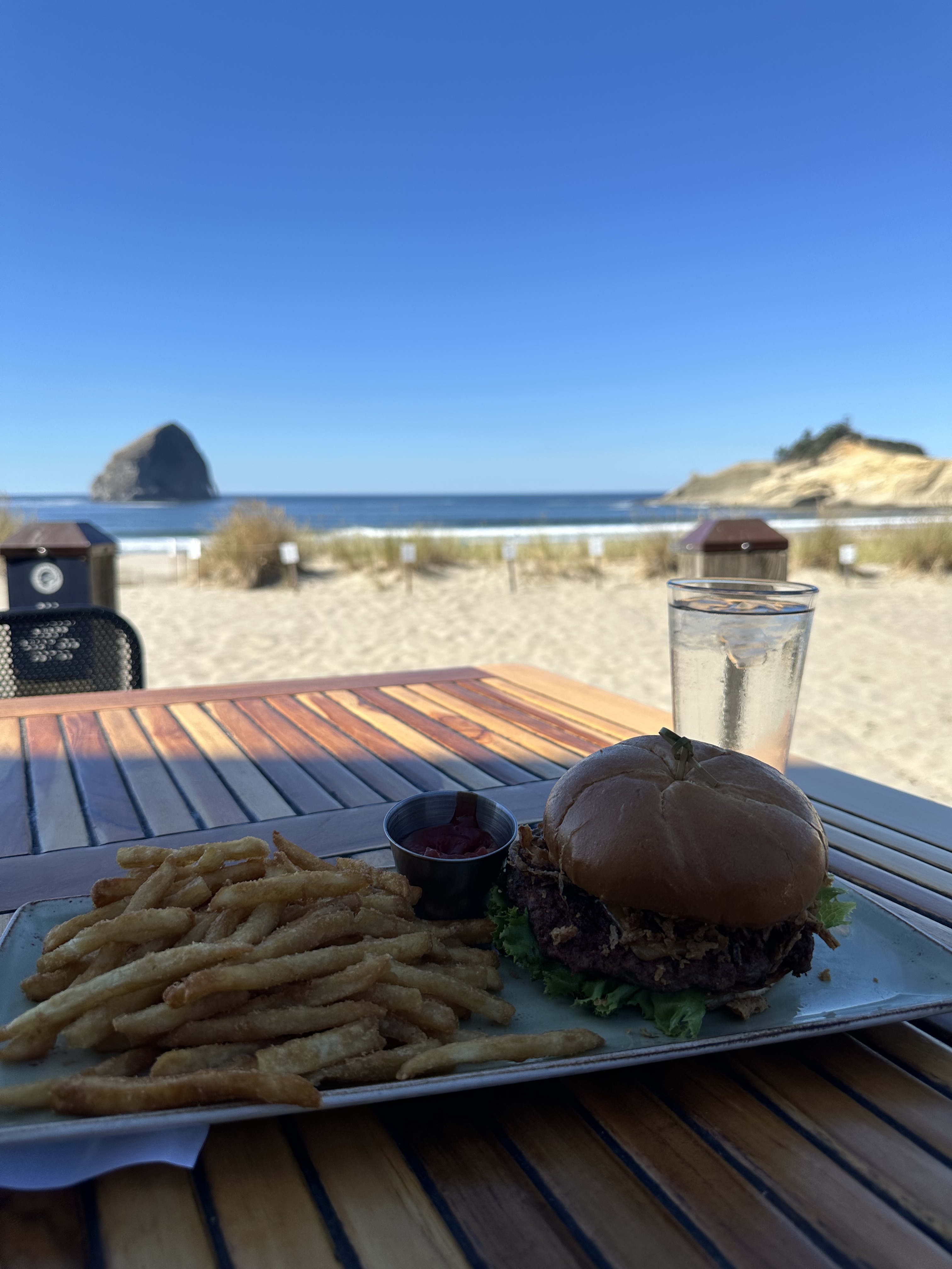 Spending time in the room is as salty-good as being on the beach. In the area along the blue line in the photo I could watch a pod of whales feeding sitting on my balcony. All this while breathing in the heady scent of salty ocean air and burgers on the grill down at the Pelican Brewing – you can charge your meal to your room!