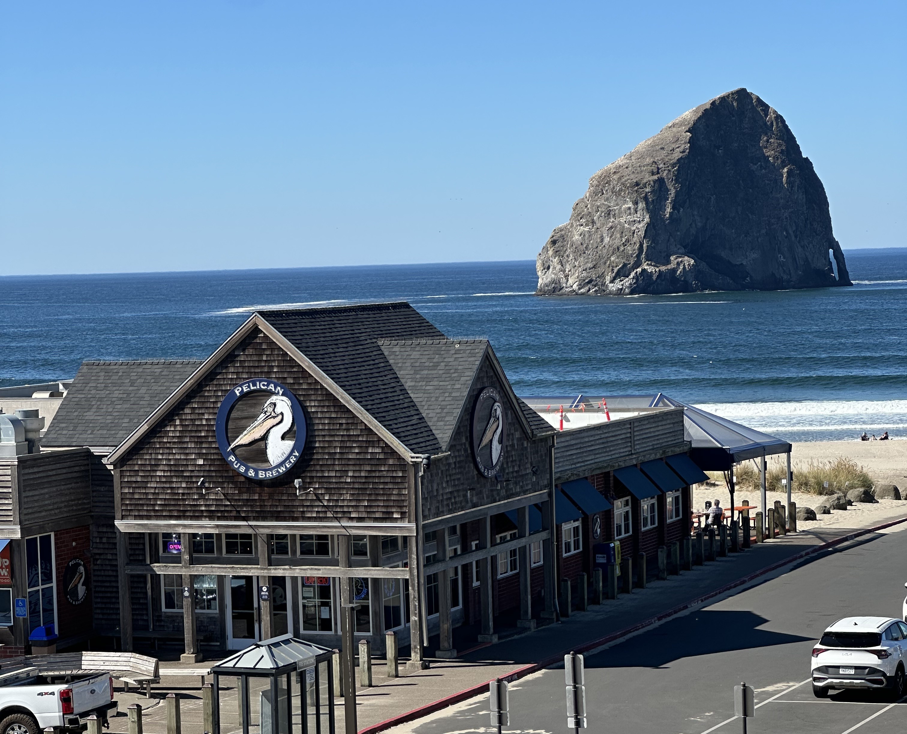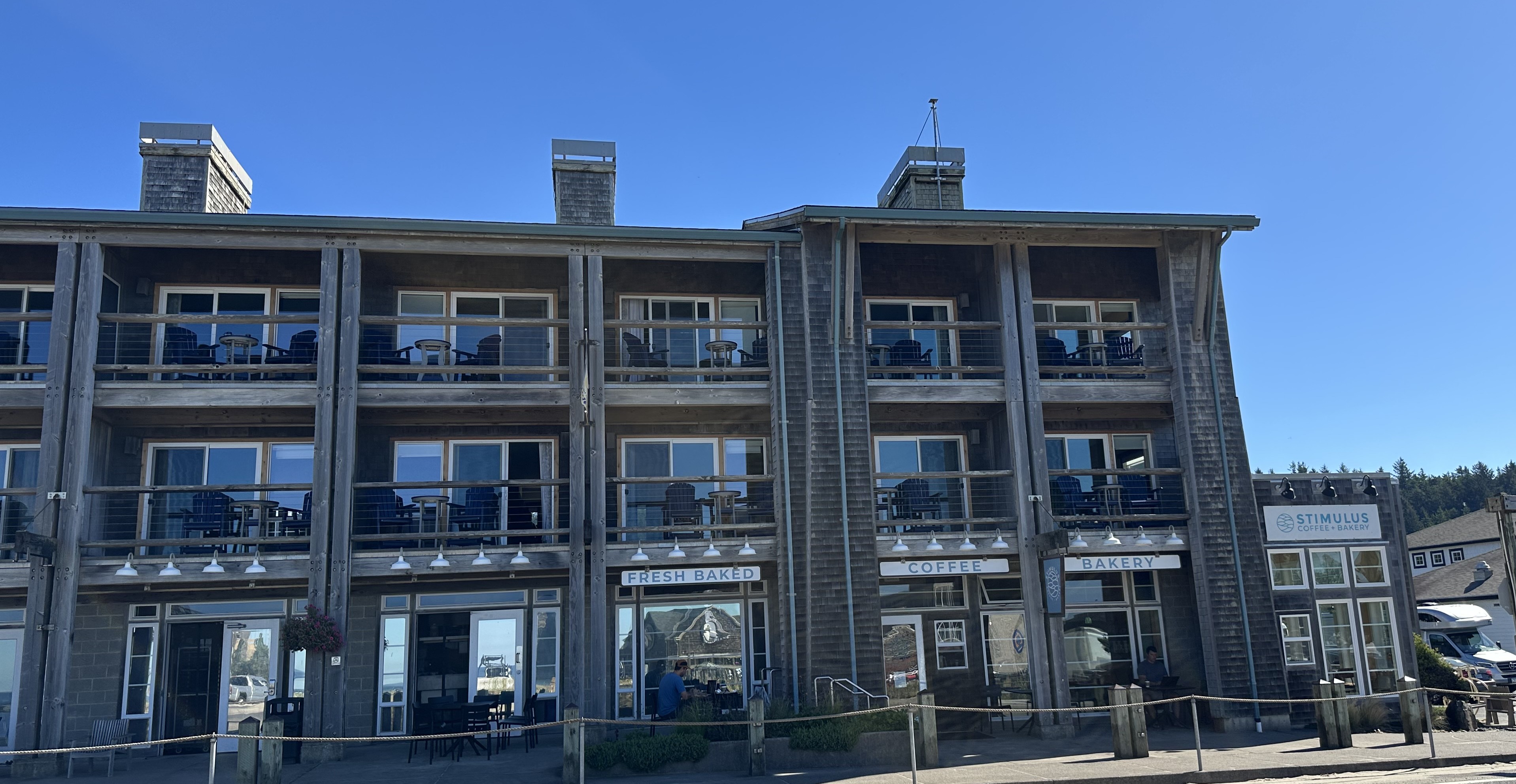 In the Gallery below you see Pelican Brewing a few steps from the Inn. While their seafood is fresh and plentiful, their burger called my name. My room was the third from the right on the third floor. Coffee in the morning was just steps away at the Stimulus coffee shop attached to the Inn. While I usually walk directly to Stimulus for my first cup of coffee, on this visit the in-room coffee (by Maud-mmmm) and the rose colored skies above the rare calm of the sea beckoned me to my private balcony where I drank in the richness of the brew, the scene and the sea.