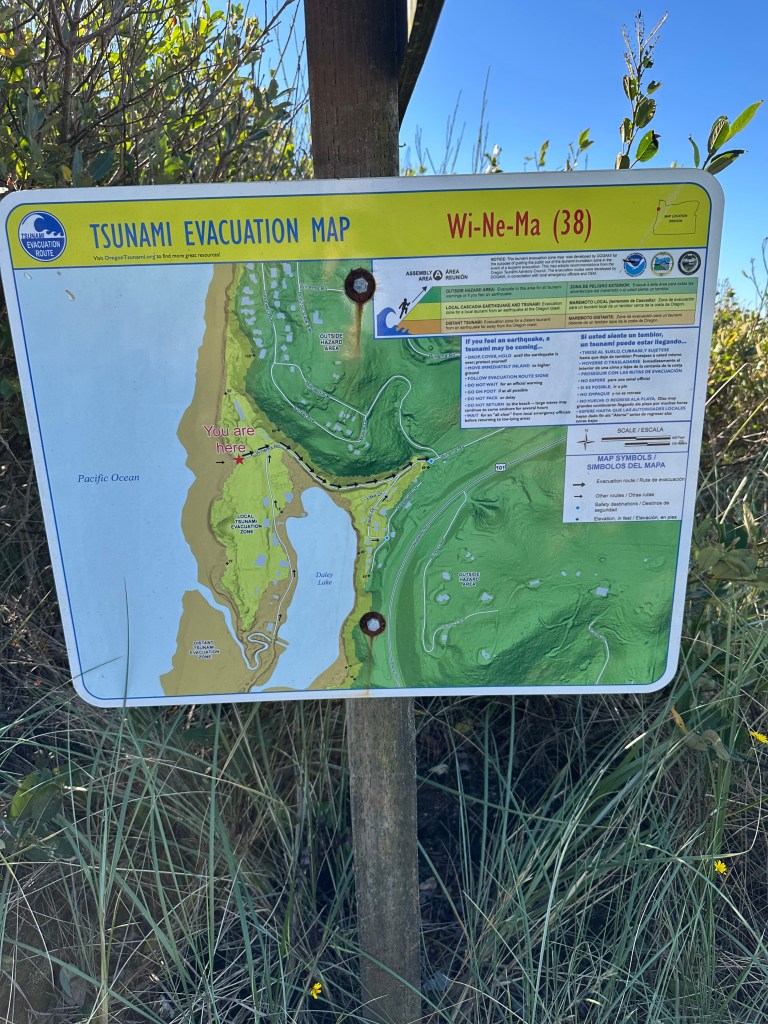 While the need for a tsunami evacuation map is sobering – the hike called “Wi-Ne-Ma” will deliver a beach walk adventure that’s hard to beat. From Pacific City, drive toward the highway and take a right. About two miles south you’ll see the sign for Winema. Don’t blink or you’ll miss it.