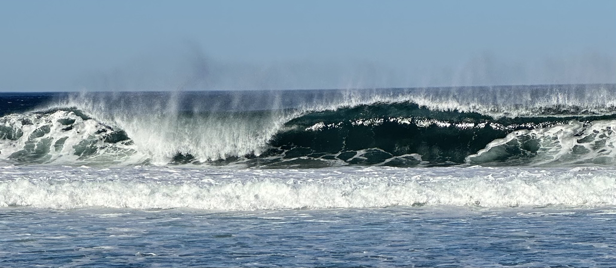 When I was at the Inn last week the waves were lapping gently as high tide tiptoed across the sand. Winter storms bring quite a different beat- pounding shore break exploding in blues and greens frothed with white spray sparkling in the sunlight
