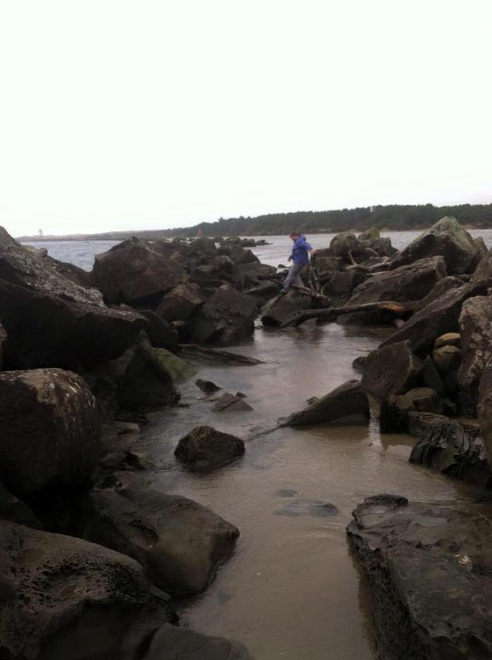 road2Last night as the winds roared wild from the south,  gusting to 50 or more, we slept soundly at Harbor Vista Park (Lane County) outside of Florence. If you plan to go there you will be happy with any site, but for unobstructed ocean views – plan ahead and try to get #13 (secret awesome tip). Just a short walk from the site you’ll find a great hike to a wide area where the Siuslaw River joins the Pacific. Seals play and so will you.