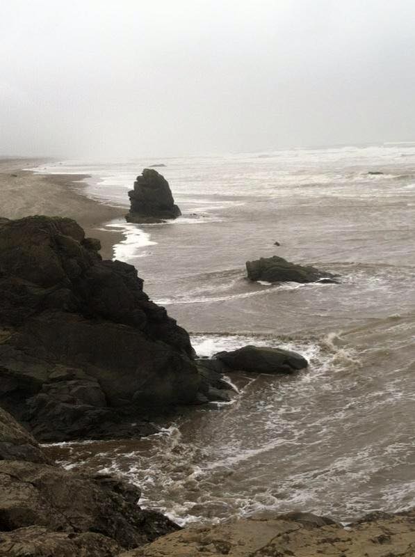 dune3So it was on one of those gray, foggy days on the Pacific NW coast. Morning dawned semi-cloudy, then on and off the fog rolled in, reminding us  of the proverbial NE “pea soup,” but thicker. The ocean seemed to be taking a Fall reprieve, resting calmly, with glassy rolling waves, but no swell to speak of. With the air temp in the low 60’s and the water about 7 degrees cooler it seemed a good day to hike the dune at Cape Kiwanda and call it good.