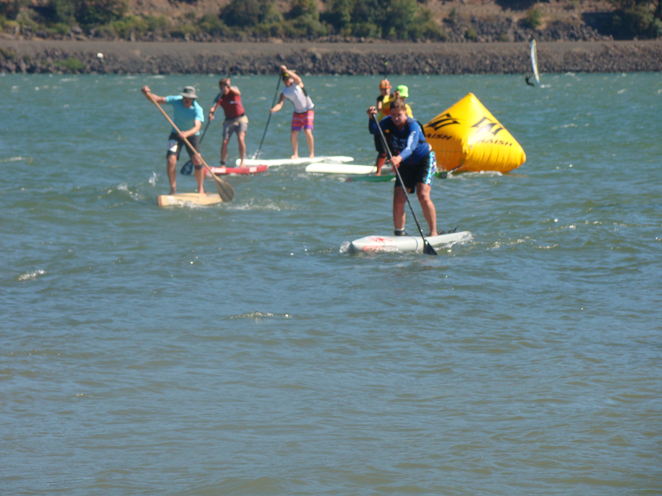 Last weekend I competed in the Naish Columbia Gorge Paddle Challenge. Compete is not the right word. Let’s just say that I was on my board and paddling in both the downwind and course OPEN class races and having a blast. Energy was high, the elite paddlers were exciting to watch and meet and the wind conditions kept us all on our toes.  The paddlers from the BigWinds JET team were inspirational, and true ambassadors for both our sport and their coach, Steve Gates.