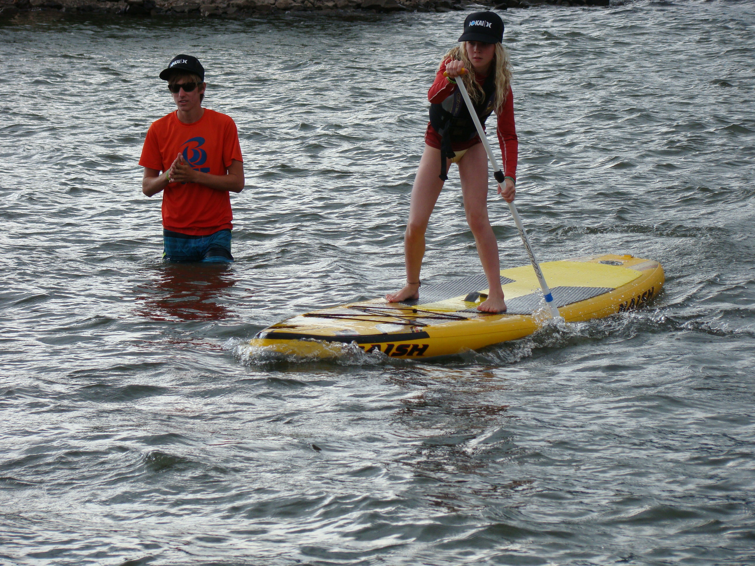 kid3Sportsmanship and Community.  Standup paddling has such an easy learning curve as newcomers to the sport start as beginners.  Young people who have put in some time and have gained some skills – usually from a parent or mentor – can easily adopt those roles for themselves.  The nature of SUP events invites connection, fun and even competition across age groups.  On the land or on the water opportunities to share equipment and knowledge are abundant.