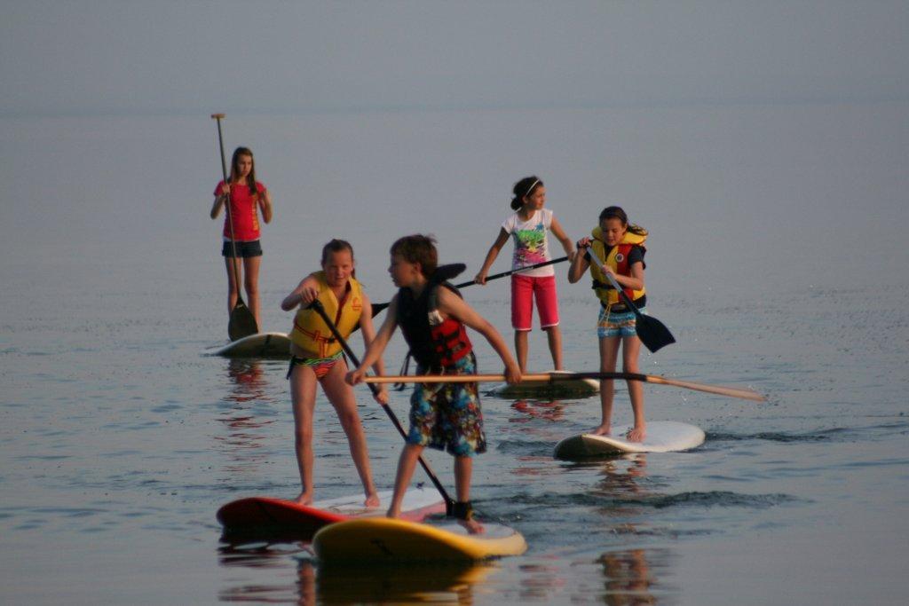 Spatial awareness.  When kids learn how to navigate a standup board through narrow spaces and tight turns—how to avoid collisions, round a buoy with finesse, or squeeze into a packed starting line at a regatta—they develop a spatial awareness that will bring them prowess all activities that involve coordination.  Like driving, for instance.