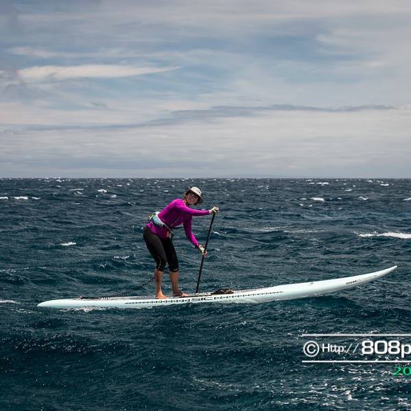 Over the past month we featured SUP athlete (and pianist, and much more) Peggy King as she prepared for the 2014 Maui 2 Molokai race. While she finished 2nd to last with a time of 4:50, that was a 40+ min. Improvement over last year’s 5:34. Peggy was the oldest competitor- and was recognized for that by Rodney Kilborn at the event.