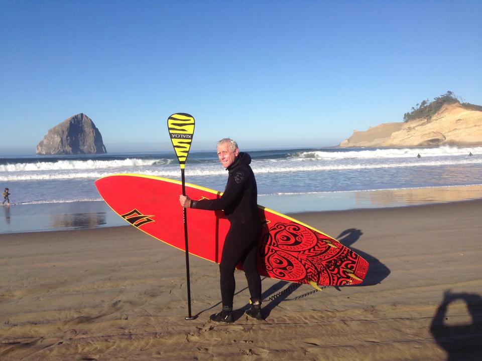 Seriously, the graphics on the bottom are stellar. It’s light, and almost leaps into waves on its own. Well, now I am just babbling. But seriously, I have never (in 65 years) executed a sharp bottom turn on a head-high wave with absolute confidence and ease – until my sweet Hokua came along. It was early morning and cold on the Oregon coast in late September.