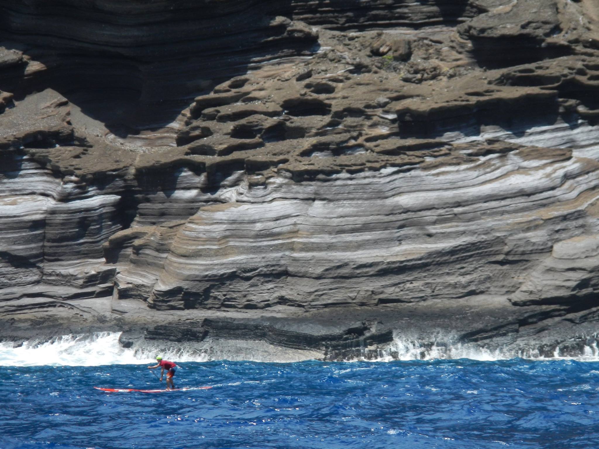 The conditions did not deliver the usual tradewinds and nice push toward glides the paddlers dream of. In fact the swells were smallish and every glide was the result of hard work, sometimes against both wind and current.