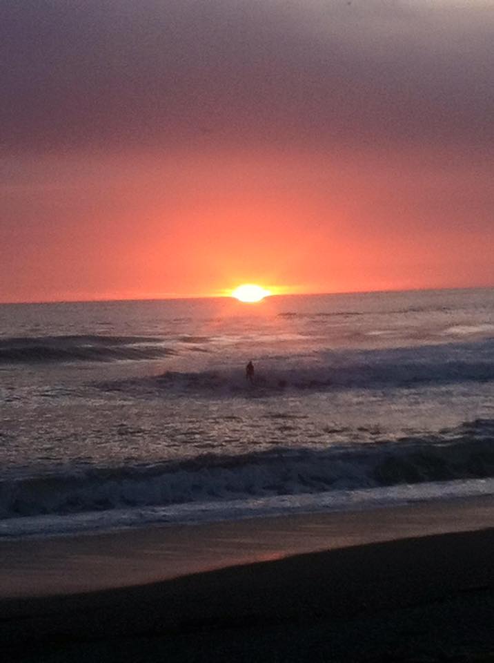 Surfer at dusk, enjoying the first sunny day in a long time. (Photo by Ed Shasek)