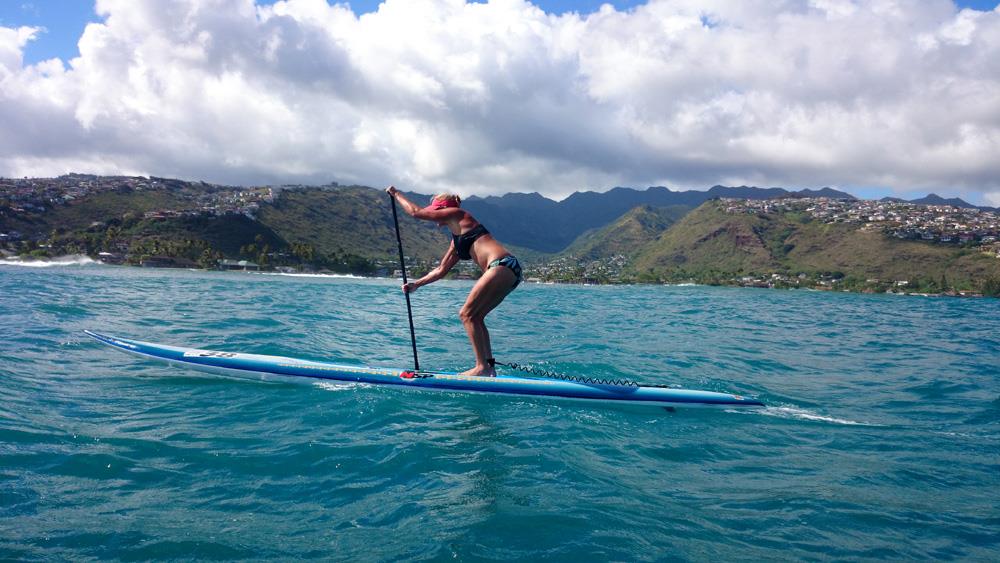 Understanding the basic mechanics and physiology of stand up paddling can increase both motivation and effectiveness of our training.  Recent winner of the Kanaka Ikaika Racing Association Women’s Overall SUP Unlimited Hawaii State Championship in April 2015, Jane McKee (profile article here), has taken the time to share some of her solid insights with us. After decades racing OC1 and OC6, Jane began focusing on training for SUP downwind and events in August 2014.