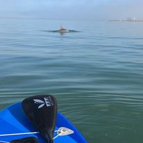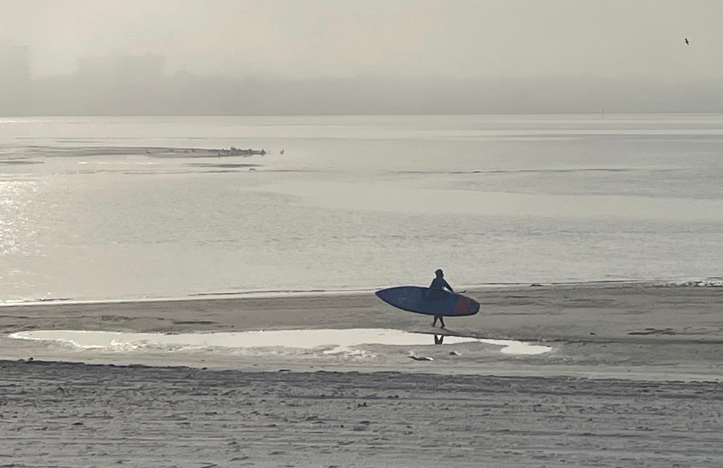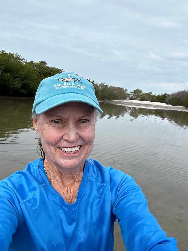 It was time to focus on engaging a body rotation and abs engagement during the paddling. Paying attention to keeping my shoulder relaxed- not hunched up toward my ears- and shoulder blades “down on my back” Helped with getting a clean catch. Rotating with awareness and taking the blade out of the water soon enough took my attention away from fatigue.