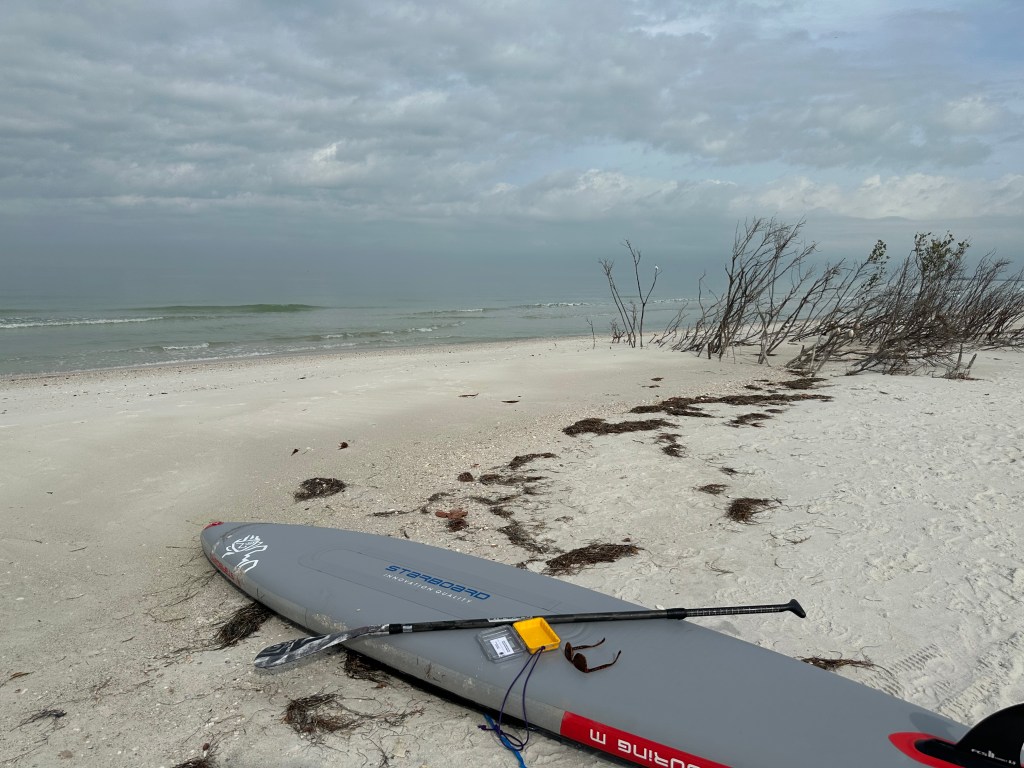 - Eyes closed – All alone on this huge body of water I was brave enough to try 6 paddle strokes per side for 3 sets repeated dozens of times. Wow! Balance and feel for how I was moving over the water was an eye-opener (LOL, eyes were shut!) Charging down wind in wind and waves requires solid balance and feel for how the board and water interact. This was so much fun.