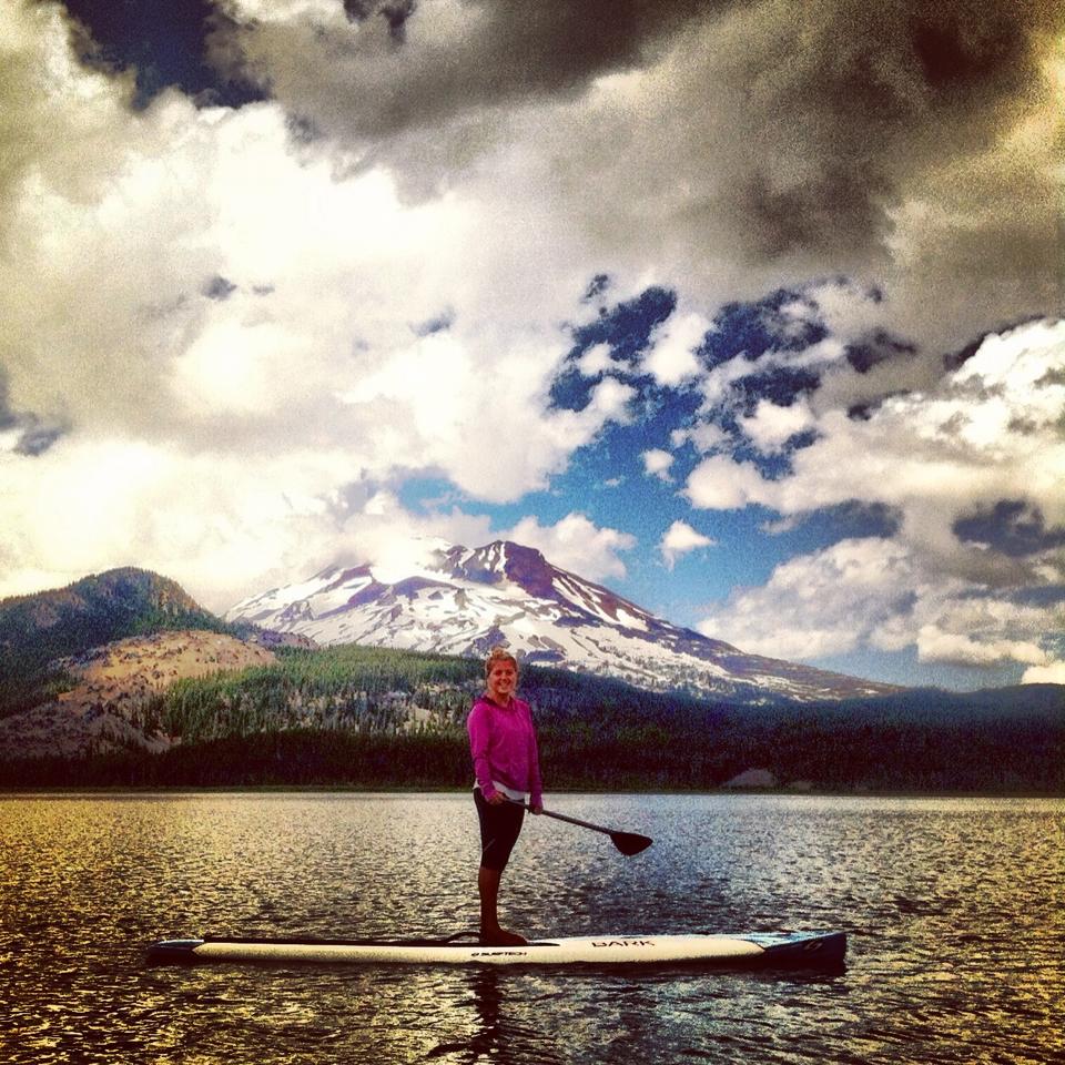 The Saturday after BOP I went with my husband Ed and two good friends up to one of the clearest Cascade Lakes you’ll ever see – Hosmer Lake. Sitting in an embrace of South Sister and Mt. Bachelor, just behind Elk Lake, Hosmer is a spring-fed lake is actually two small lakes connected by a short channel. In the crystal clear waters, you can easily see the trout and stocked Atlantic salmon that are the quarry of catch-and-release anglers here. We paddled across the first, wide section of Hosmer. Even though we’ve paddled here hundreds of times we could help but comment on the beauty, the wonder and how amazing it is to have this lake so close to home.